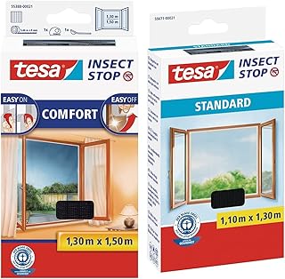 tesa Insect Stop COMFORT Fliegengitter Fenster - Insektenschutz mit Klettband selbstklebend,130cmx150cm & Insect Stop STANDARD Fliegengitter für Fenster - Insektenschutz zuschneidbar, 110 cm x 130 cm