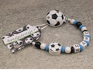 kleinerStorch Baby SCHNULLERKETTE mit Namen - Motiv Fussball in Vereinsfarben - blau, weiß, schwarz