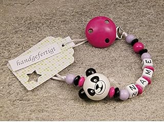 kleinerStorch Baby SCHNULLERKETTE mit Namen - Schnullerhalter mit Wunschnamen - Mädchen Motiv Panda Bär in pink