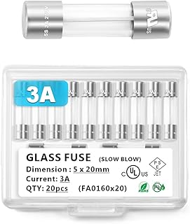 Chanzon 20 Stück VDE Prüf 5x20 3A Sicherungen Sicherung Glassicherung Glasrohrsicherung Feinsicherung Schnelle Glas Sicherung 125V Glas AGC-Patrone Röhrensicherung Slow Blow Time Delay 250 V