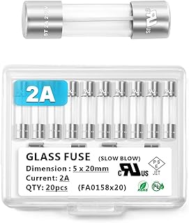 Chanzon 20 Stück VDE Prüf 5x20 2A Sicherungen Sicherung Glassicherung Glasrohrsicherung Feinsicherung Schnelle Glas Sicherung 125V Glas AGC-Patrone Röhrensicherung Slow Blow Time Delay 250 V