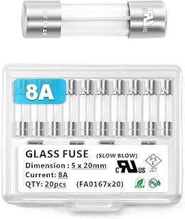 Chanzon 20 Stück VDE Prüf 5x20 8A Sicherungen Sicherung Glassicherung Glasrohrsicherung Feinsicherung Schnelle Glas Sicherung 125V Glas AGC-Patrone Röhrensicherung Slow Blow Time Delay 250 V