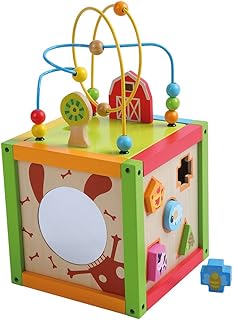 ISO TRADE Motorikwürfel Multifunktions Aktivitätswürfel Perlenlabyrinth Holzspielzeug Steckspiel Drehspiel Für Kleinkinder 7711