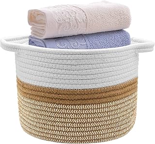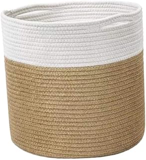 HOMYAM XXXL-Korb aus Baumwolle, 55,9 x 35,6 cm, 100 % natürliche Seilkorb, gewebter Aufbewahrungskorb, großer Korb, Deckenkorb, Wohnzimmer, Spielzeugkorb, Kissenkorb, runder Korb – Weiß Gold