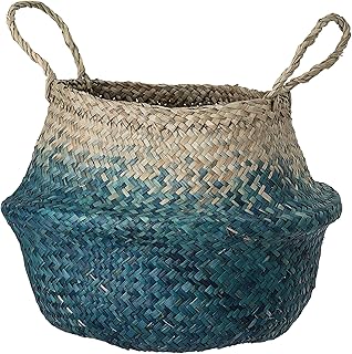 IVAILEX Seegras Korb, Korb Geflochten,Korb Aufbewahrung, Pflanzenkorb mit Griffen, Faltbarer Gewebt Bauchkorb Spielzeug Lagerung, Aufbewahrungskorb Veranstalter Strandtasche
