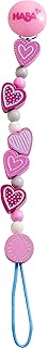 HABA 304631 - Schnullerkette Funkelherz, Schnullerkette aus Holz mit Herzen und Glanzeffekt, Baby-Spielzeug ab 0 Monaten