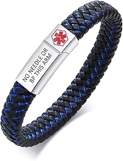 Benutzerdefiniert Gravur Medizinischer Alarm Notfallschmuck Handgefertigtes Geflochtenes Leder Medizinischer Symbol mit Magnetverschluss Manschette Armband für Herren