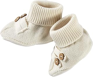 Bio Baby Strickschuhe 100% Bio-Baumwolle (kbA) GOTS zertifiziert, Ecru, 62/68