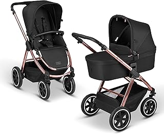 ABC Design 2in1 City-Kinderwagen Samba Diamond Edition– Kombikinderwagen für Neugeborene & Babys – Inkl. Buggy Sportsitz & Babywanne – Radfederung & höhenverstellbarer Schieber – Farbe: rose gold