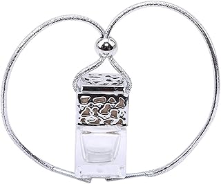 Idiytip 1 Stück Leere Glasflasche für ätherische Öle Parfüm Anhänger Auto Ornament Lufterfrischer Auto Duft Diffusor Hängende Verzierung Auto-Styling (Silber)